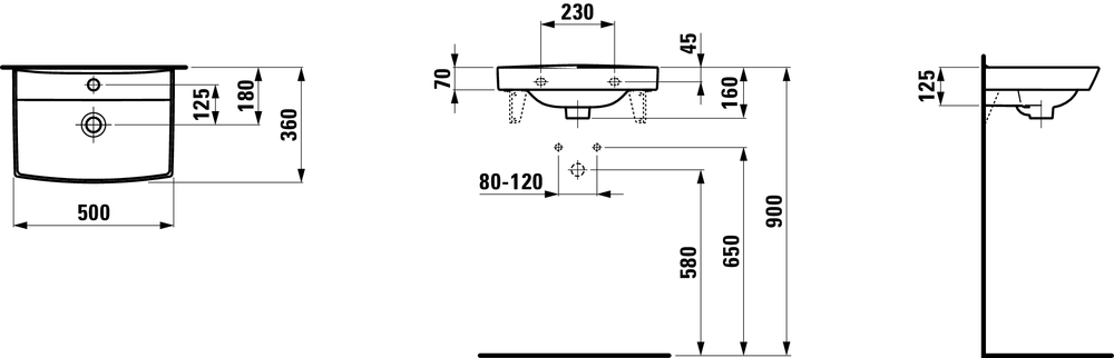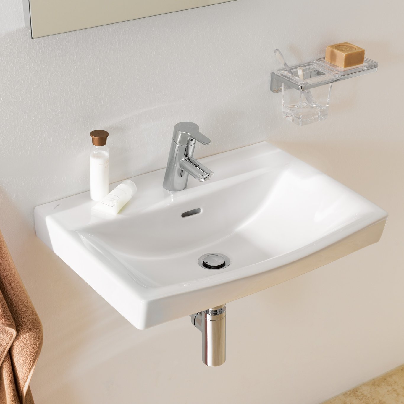 Denne servanten fra Laufen har rene linjer og et minimalistisk design. Den kommer med hull til servantarmatur på midt på.