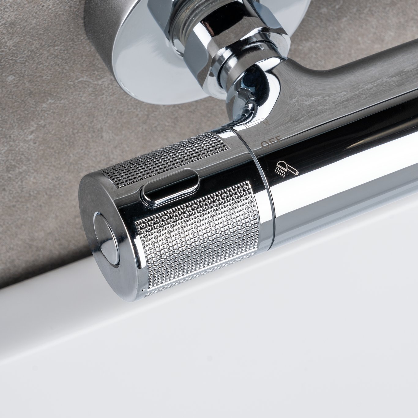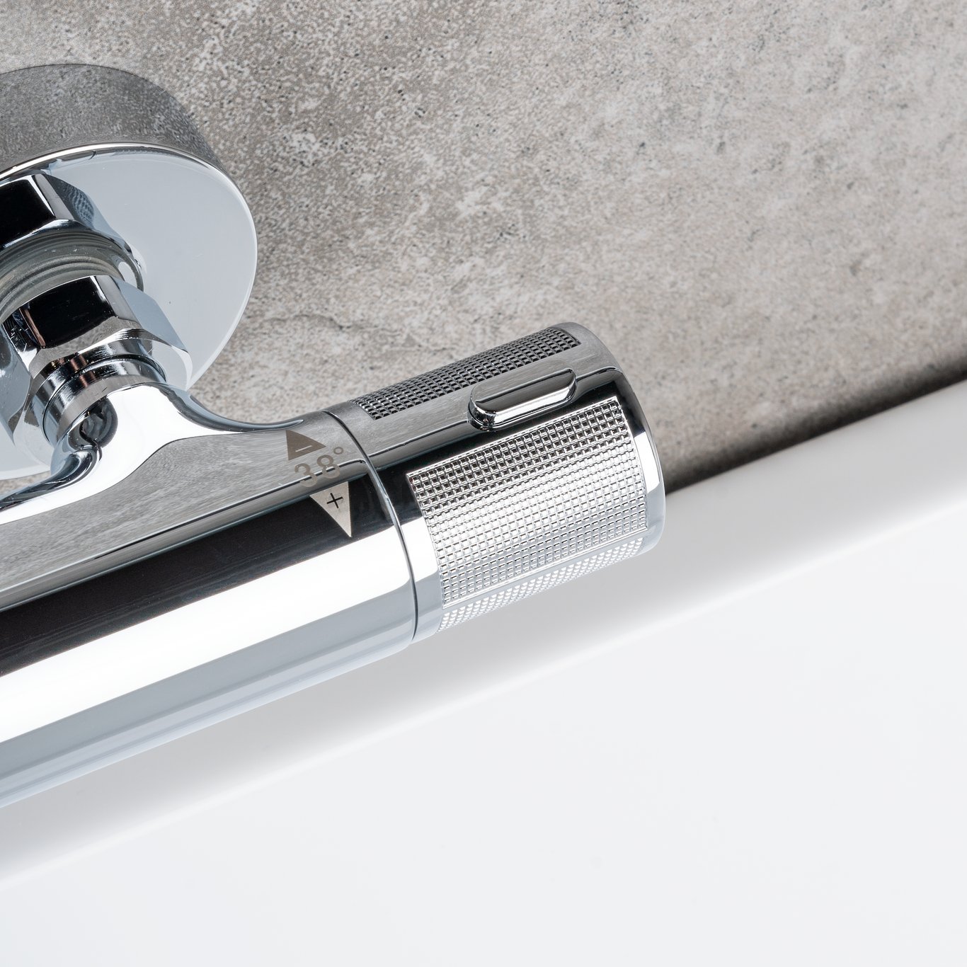 Stoke kar- og dusjtermostat fra Celeste har rene og minimalistiske linjer, med en utførelse av krom.