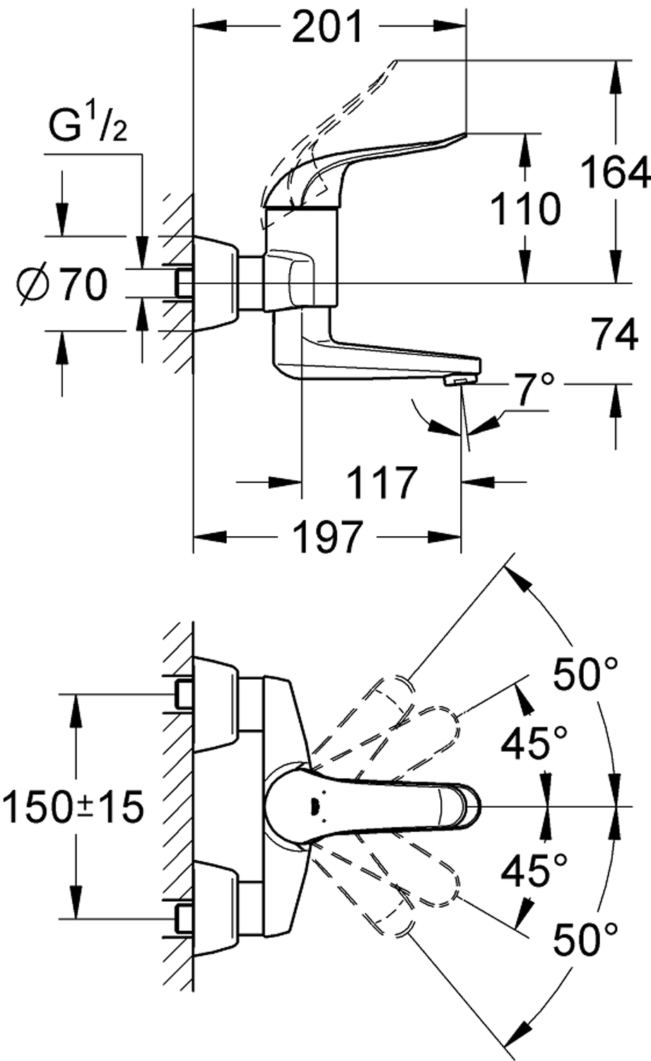 veggmontasjeGROHE StarLight krom overflateGROHE SilkMove 46 mm keramisk patronGROHE watersaving-teknologi for mindrevannforbrukvariable justerbar volumbegrenservariabel innstillelig temperaturbegrenserinnstillbar minimumsmengde 2,5 l/minlaminar stråleregulator 9 l/minsvingbar og fast innstillelig tutbeskytter 197 mmmetallhendelhendel 120 mmS-tilslutningerVann- og avløpsinstallasjoner må installeres av rørlegger.