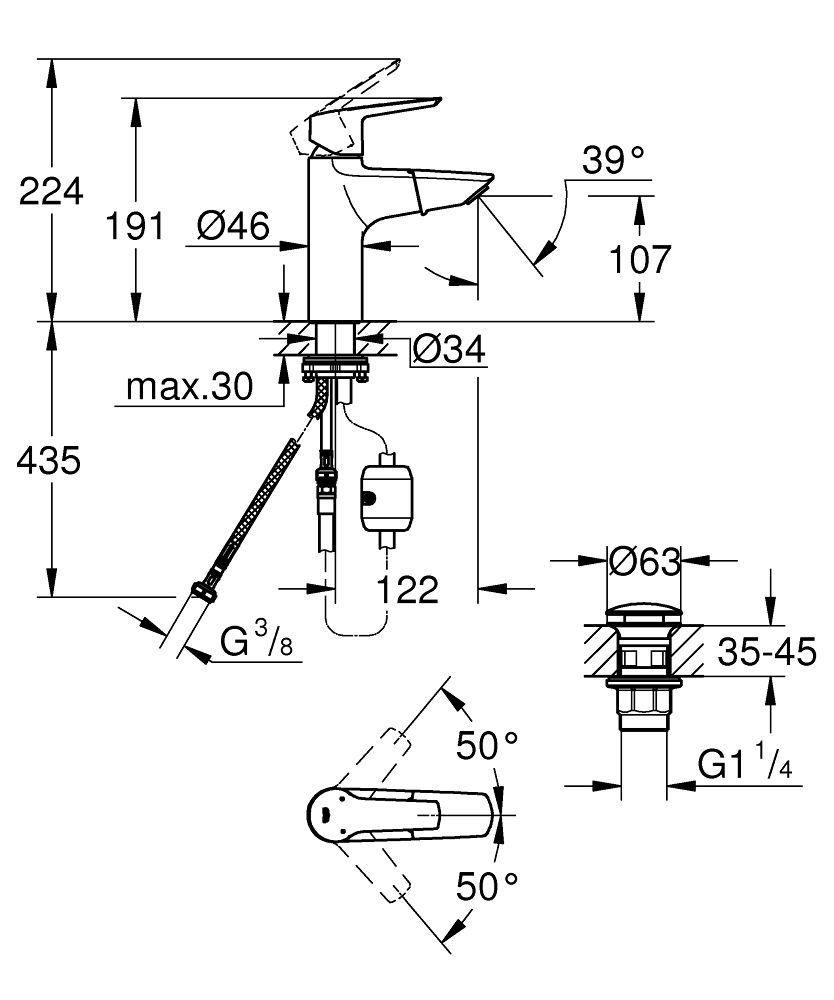 uttrekkbar tutetthullsmontasjemetallhendelGROHE SilkMove 28 mm keramisk patronvariable justerbar volumbegrensermed temperaturbegrenserGROHE StarLight krom overflateGROHE watersaving perlator 5,7 l/minhurtig-montasje-systemGROHE Magnetisk docking garanterer enkel og jevn tilbaketrekning av sprayhodet tilbake til startposisjonenglatt kropp med oppløftsventil og avløpsgarnityr sett 1 1/4"fleksible tilkoblingsslangerVann- og avløpsinstallasjoner må installeres av rørlegger.