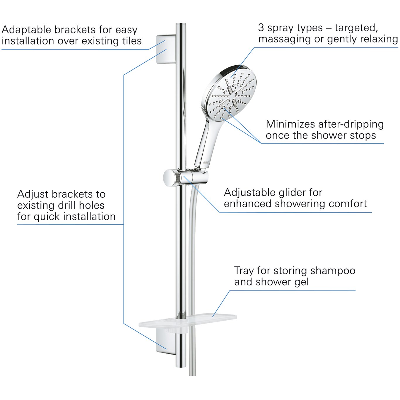Grohe rainshower smartactive 130 dusjsett 3-spray krom