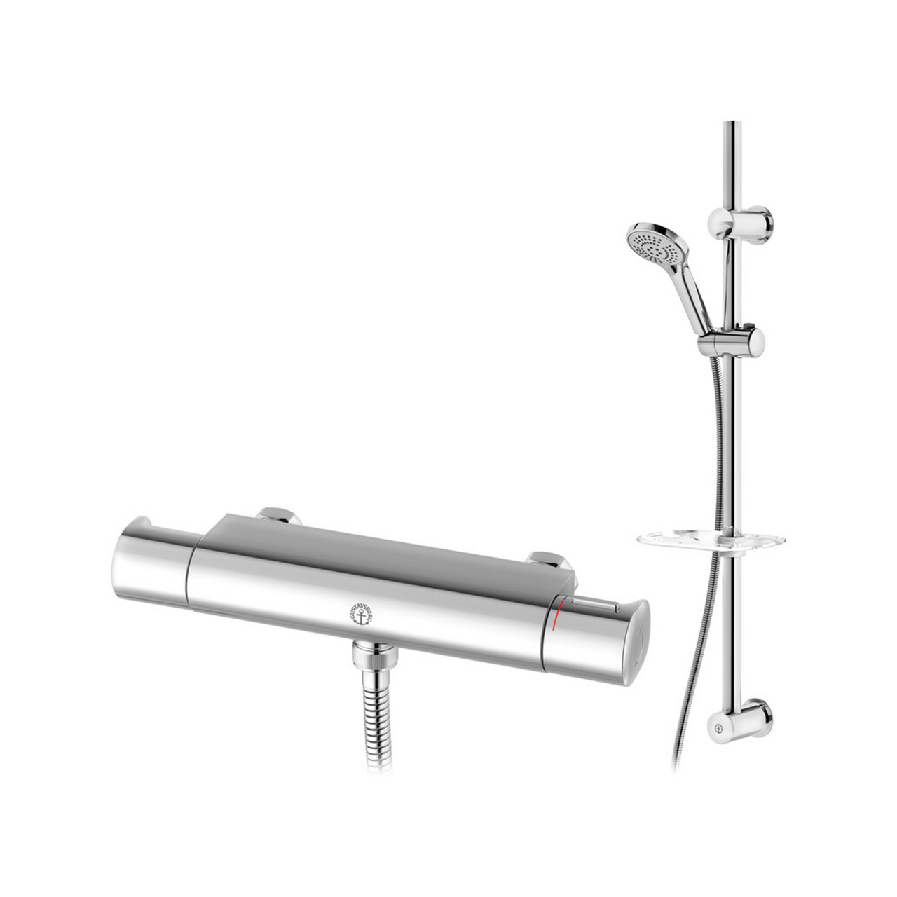 Denne dusjpakken fra Gustavsberg kommer med et praktisk sett med både hånddusj, dusjstang og dusjtermostat og passer godt inn på ethvert baderom.