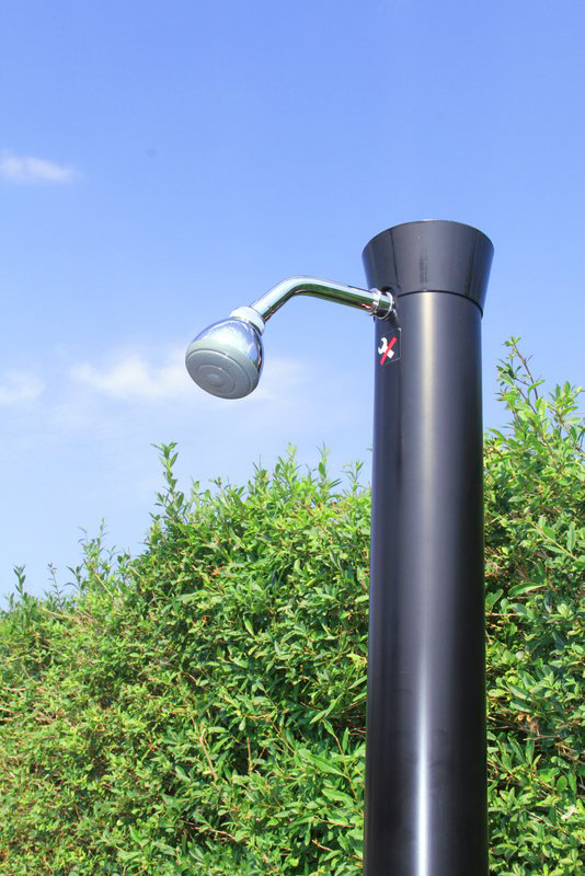 Dusjen kan plasseres på et flatt underlag og kobles direkte til en hageslange. Med et blandebatteri som lar deg justere mellom varmt og kaldt vann, får du en komfortabel dusjopplevelse. Dusjen er laget av værbestandig materiale og den er både lett å håndtere og enkel å lagre mellom sesongene.