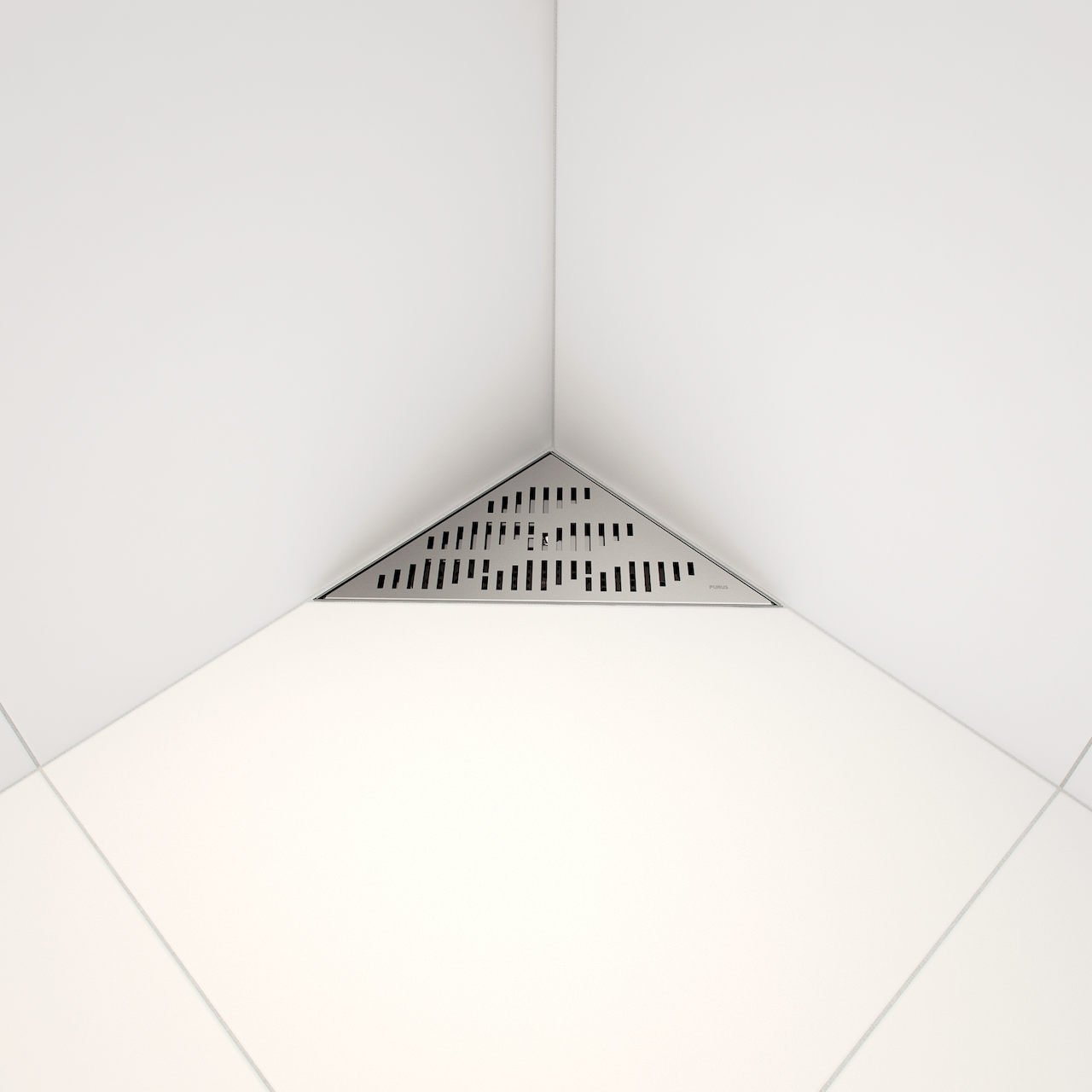 Purus (Joti) Corner Twist er et komplett hjørnesluk med twist-rist. Risten kan enkelt byttes med andre slukrister med ulikt mønster eller farge.
