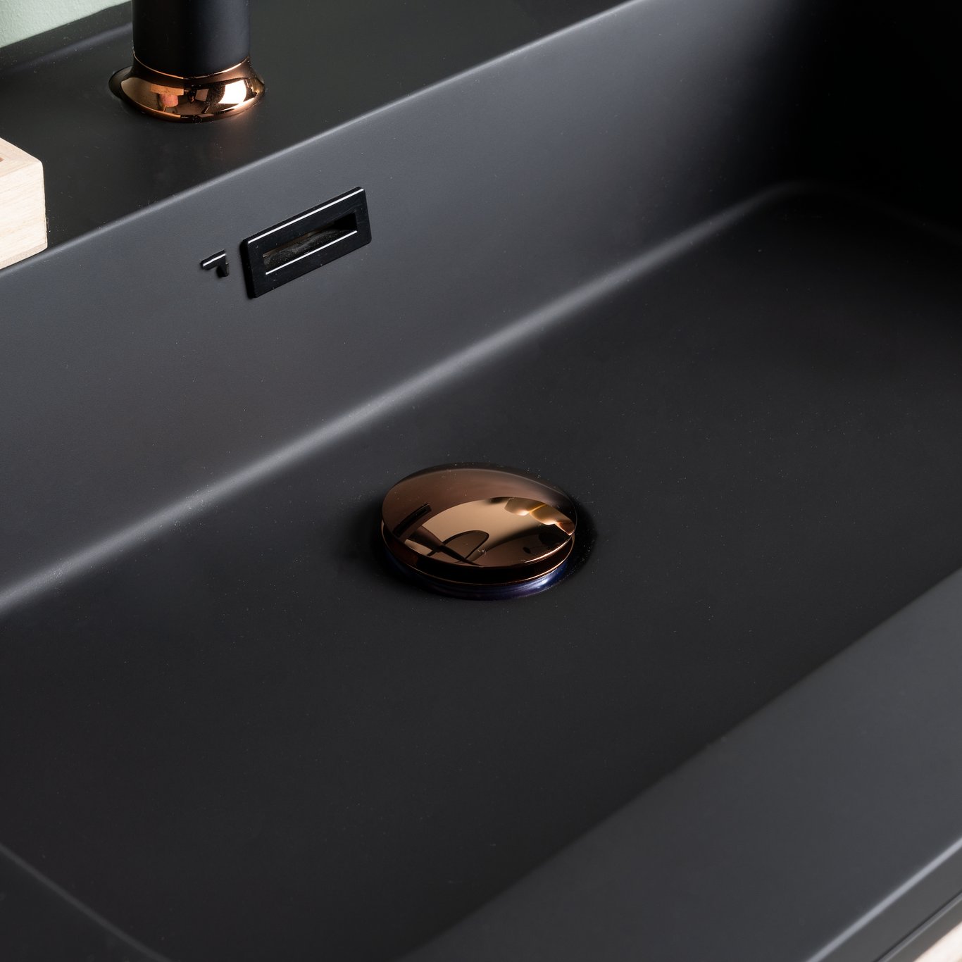 Lekker pop-up bunnventil med kobber-finish fra Celeste. Passer perfekt til servanter med integrert overløp, samt servanter uten overløp.