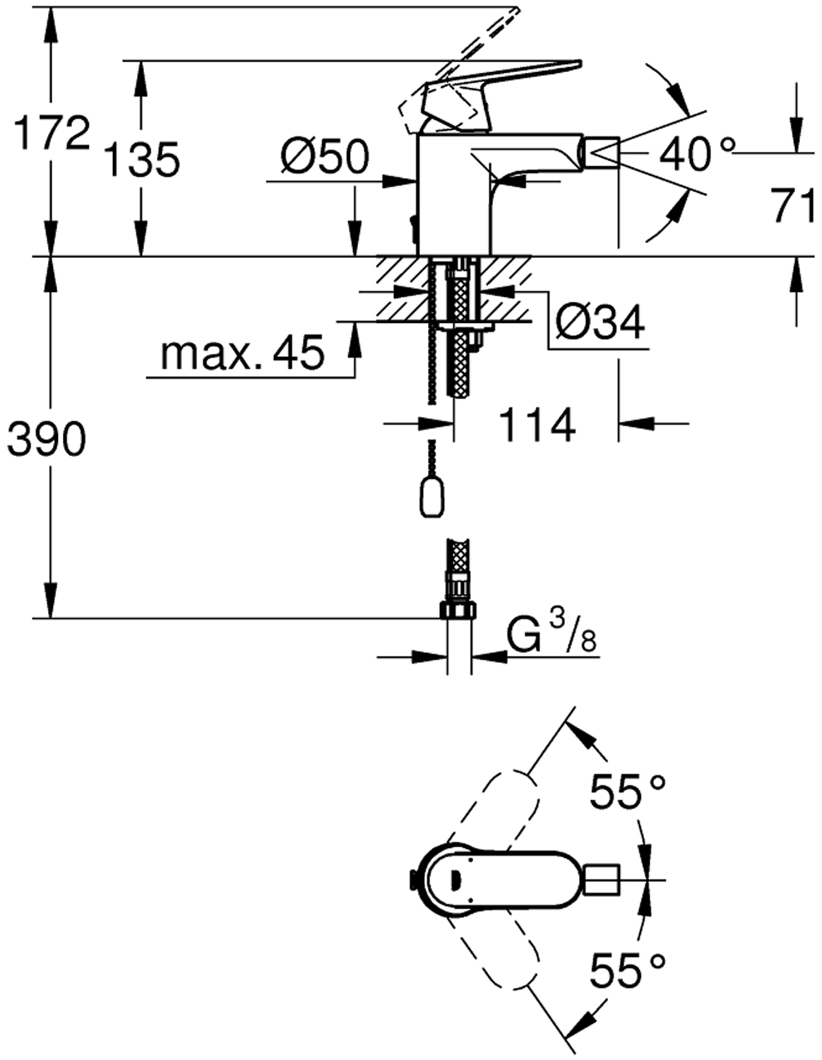 GROHE EUROSMART COSMOPOLITAN BIDEARMATUR KROM