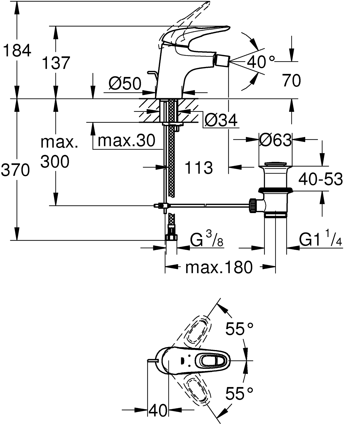 Grohe eurostyle bidéarmatur small m/oppløftsventil
