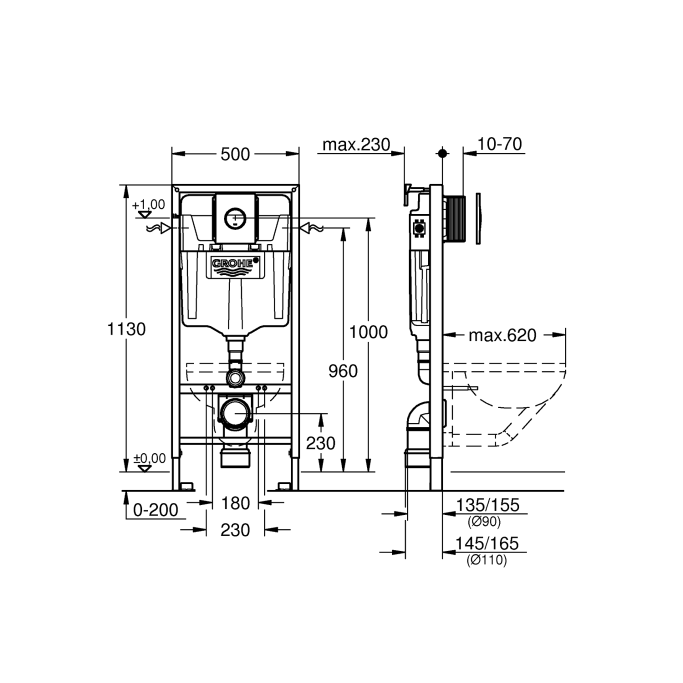 Grohe rapid sl 3in1 sisterne m/krom trykkplate 113cm