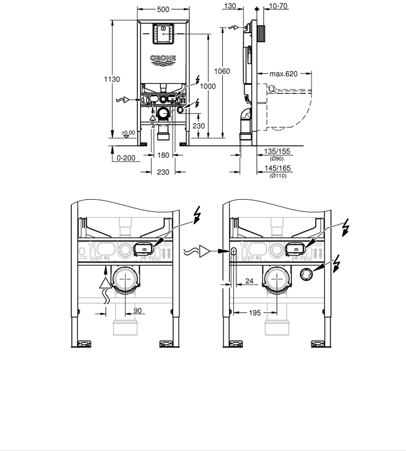 GROHE RAPID SLX SISTERNE 113CM M/INTEGRERT STIKKONTAKT OG DUSJTOALETTFORBINDELSE