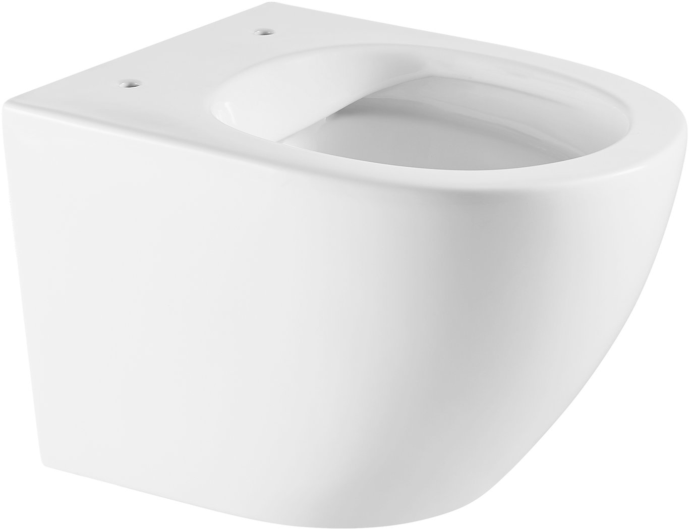 Veggskålen har skjulte veggfester, åpen spylekant og en matt hvit finish.