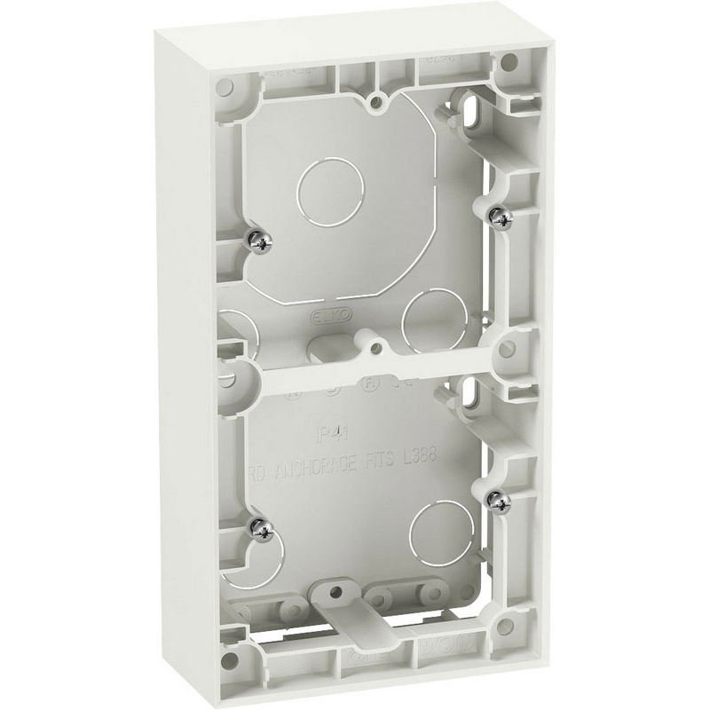 Dobbel kappe ved montering av utenpåliggende enheter i polarhvit design utførelse. ELKO Plus serien har et tidløst moderne design, med slette flater og rette kanter.