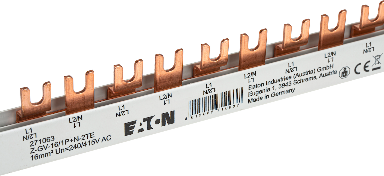 Denne samleskinnen fra Eaton har to faser og en pol.