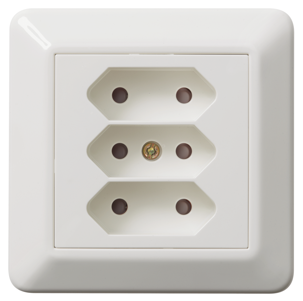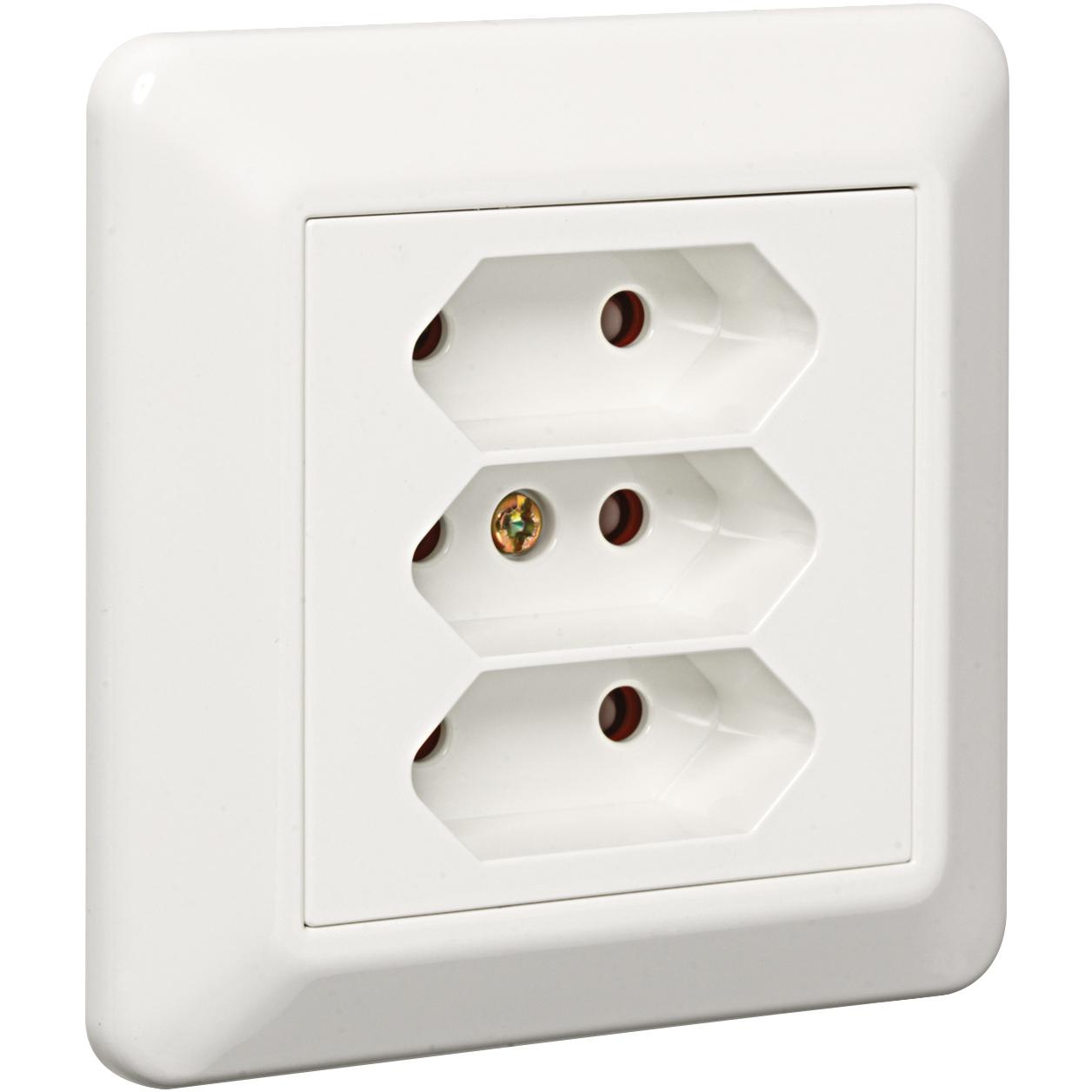 Innfelt 3-veis Euro-stikkontakt i ELKO RS16 design for tilkobling av dobbeltisolerte apparater ( klasse II) med 2,5A Europlugg