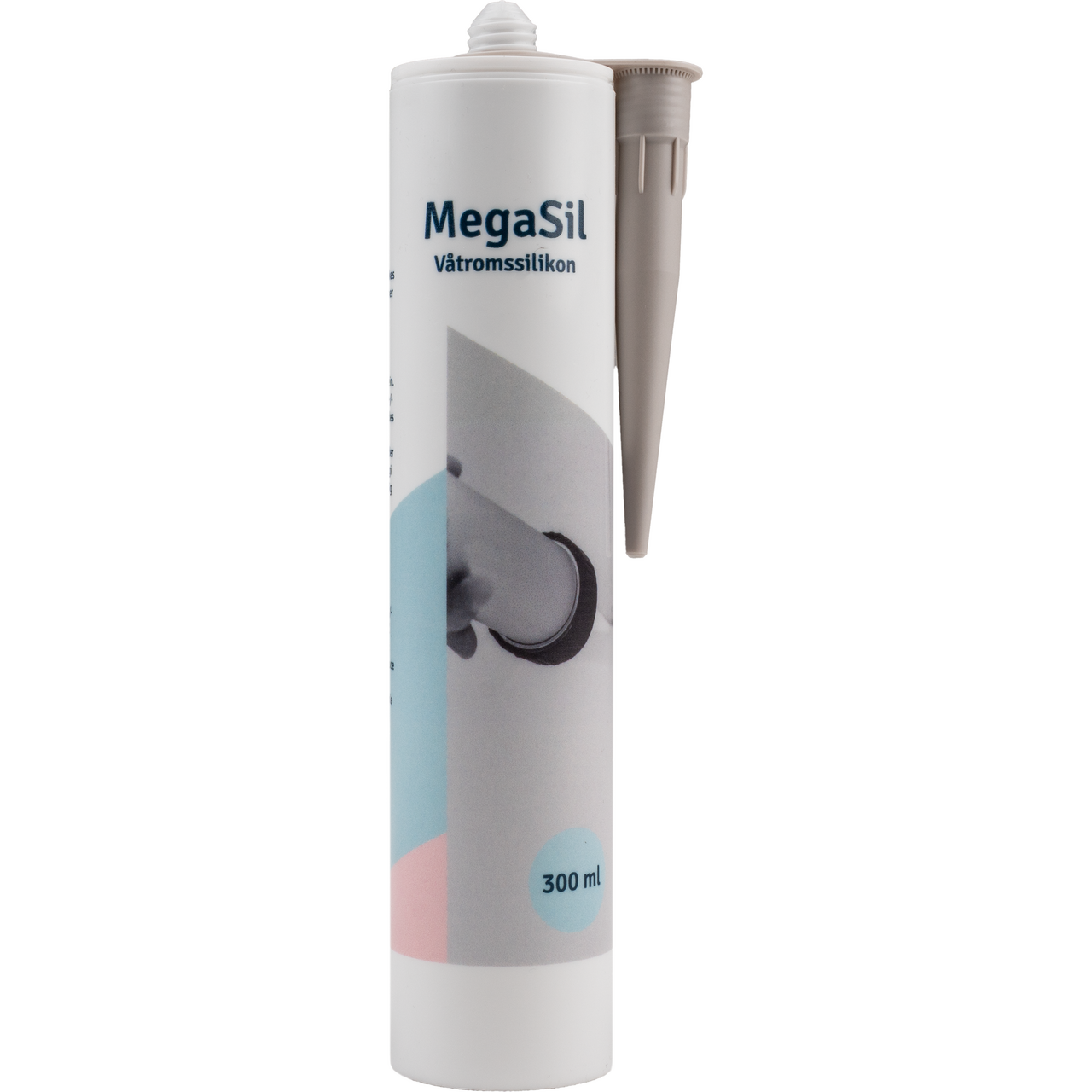 MegaSil våtromsilikon er en nøytral høyelastisk fugemasse. Tilsatt fungicid, som er et sopphemmende middel. Luktfri. Brukes i våtrom, dusjkabinett, mellom sanitære installasjoner m.m. Ekstrem god vedheft til keramiske fliser, glatt emalje, glass, glatte flater, baderoms paneler m.m. Kan også benyttes på naturstein. Porøse/sugende flater bør primes. Tåler bevegelse på +/- 25%. Arbeidstemperatur: +5°C til + 40°C. Skal bearbeides hurtigst mulig etter påføring.Bearbeidelse: Fuges på fast, tørt, rent og fettfritt underlag.Advarsel: Kan utløse allergisk reaksjon.Inneholder oxim.Innhold: 300 ml.Ikke overmalbar.