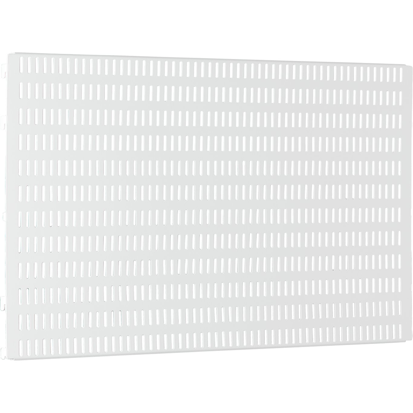Denne oppbevaringstavlen fra Elfa er perfekt for mindre ting og til verktøy, og kombineres gjerne med Elfa kroker, bokser og hyller. Den har integrerte knekter og monteres enten mellom to skinner eller direkte på veggen med veggfeste for oppbevaringstavle.