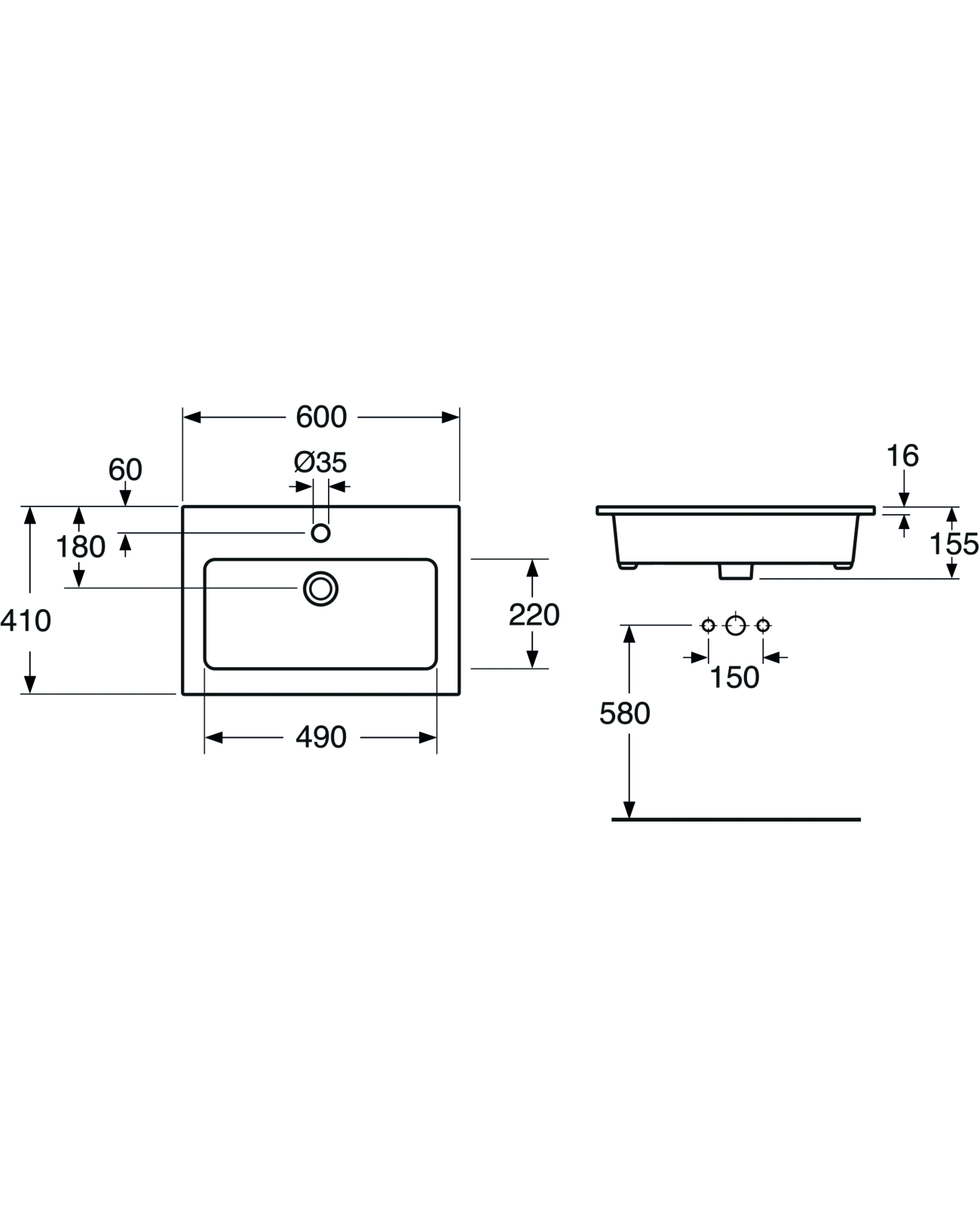 Ved bruk av servantkonsoll får du et elegant skjult oppheng med praktisk håndklestang i front. Servanten er også velegnet for nedfelling i benkeplate.