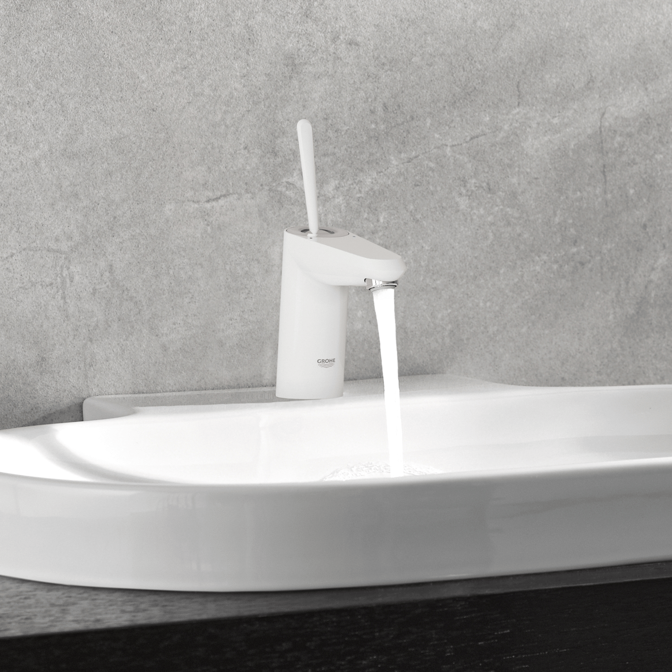 Den har et Grohe StarLight® belegg som er slitesterkt, ripesikkert og enkelt å holde rent, bare tørk av kranen med en tørr klut. Den er rask og enkel å installere og kommer med fleksible tilkoblingsslanger. Grohe watersaving® sørger for å redusere vannforbruket med opptil 50 %, uten at det går utover ytelsen.