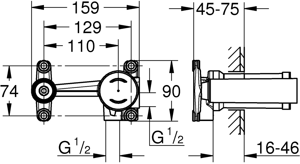 GROHE INNBYGGINGSDEL TIL 2-HULLS SERVANTBATTERI 1/2" UNIVERSAL