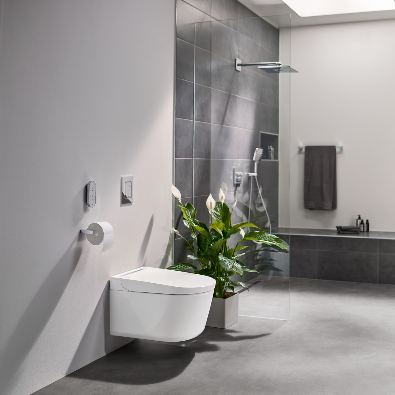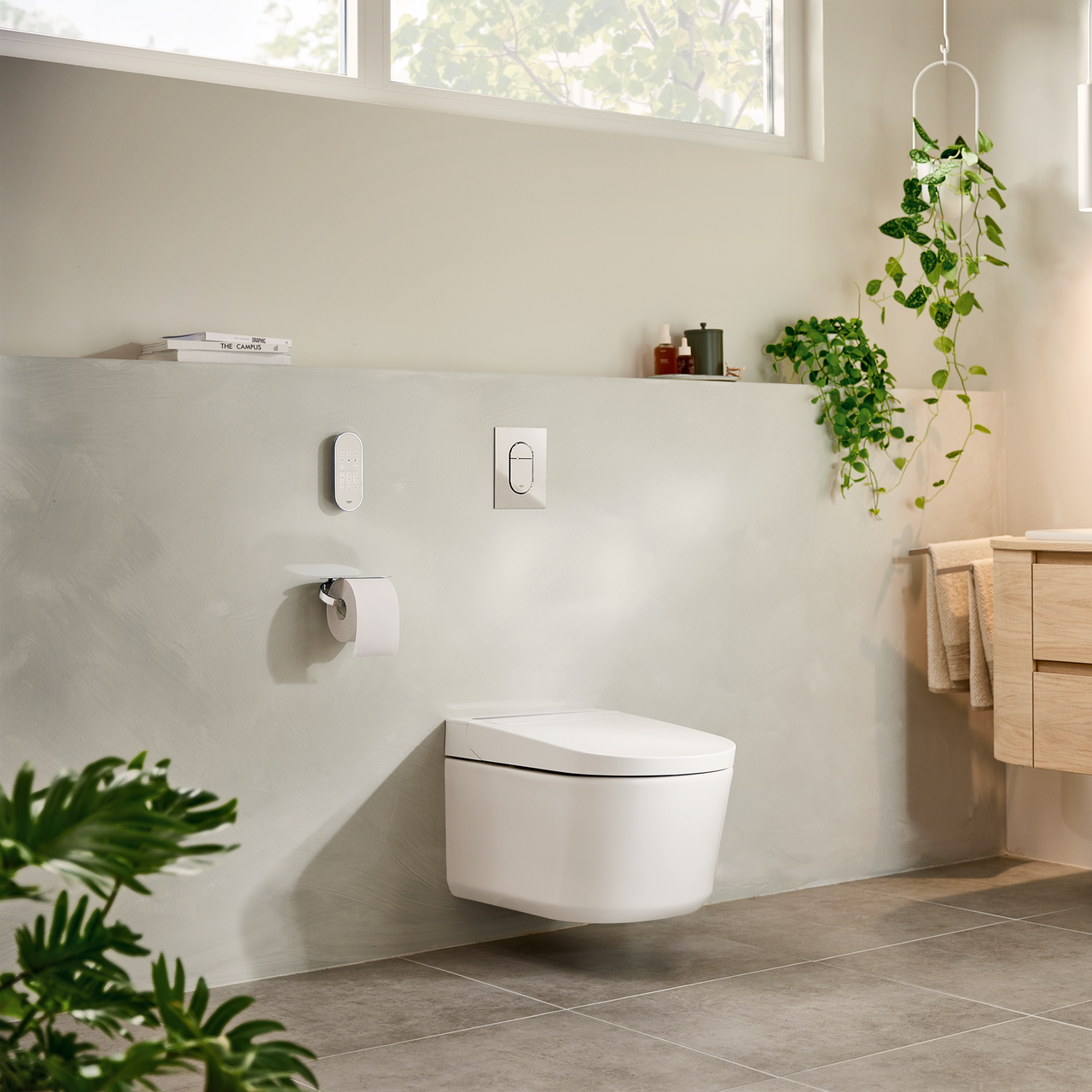 Dette vegghengte dusjtoalettet fra Grohe bidrar til god hygiene og komfort. Det kommer med en rekke smarte funksjoner, og kan også styres via en fjernkontroll.