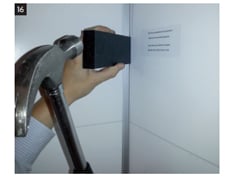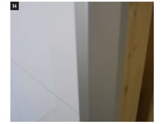 16. Sluttføring av innerhjørne-profilene: Bruk hammer og BerryAlloc slagkloss for å feste dekselet. Det skal være synlig fugemasse på hver side av dekselet når det er montert. Overskytende fugemasse fjernes med en plast skrape og rengjøres med Wipes som er egnet til å fjerne uherdet fugemasse.