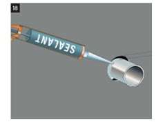 15. Sluttføring av innerhjørne-profilene: Legg fugemasse på begge sider på baksiden av dekselet på innerhjørne-profilen og trykk dekselet inn i låsesporet til innerhjørne-profilen.