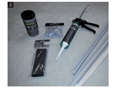 2. Hjørneprofiler, bunnprofiler, BerryAlloc Sealant (fugemasse), Wipes, BerrryAlloc skruer (30 eller 45 mm) og BerryAlloc slagkloss. Dersom det benyttes utstyr som ikke er beskrevet i BerryAlloc sin monteringsanvisning, kan garantien falle bort.