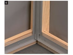 5. Montering av innerhjørne-profiler: Innerhjørne profilen består av to deler, innerdel og deksel. Innerdelen skal monteres med skruer til stenderverket.