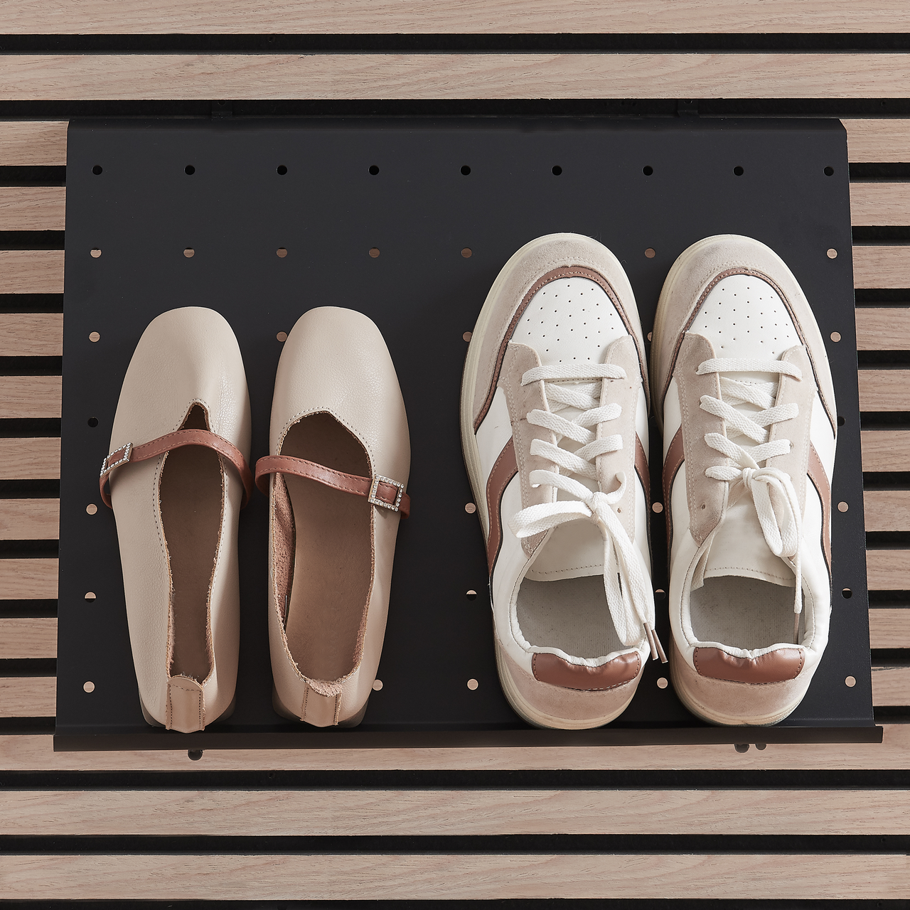 Denne skohyllen fra Millex gir smart og plassbesparende oppbevaring på spileplater. Den holder skoene løftet fra gulvet og bidrar til et ryddigere inngangsparti.