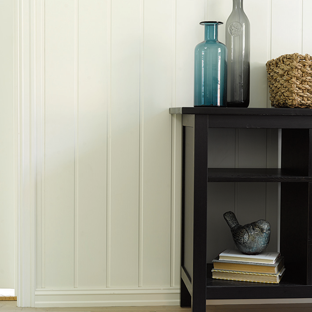 Disse ferdigmalte dekorplatene fra Smartpanel gir et klassisk uttrykk, i en varm hvit farge som passer inn i de fleste hjem. Dekorplatene er laget for enklere renovering, og brukes direkte på eksisterende vegger.