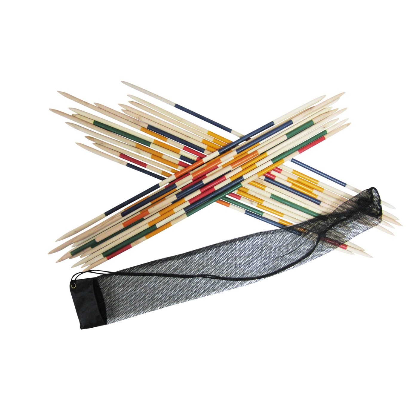 Kjempemikado fra Play>it er en gøyal og stor utgave av det originale mikado-spillet, som går ut på å fjerne pinner fra haugen uten at noen andre pinner rører på seg.