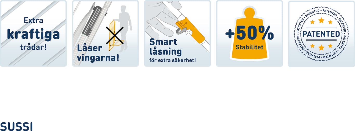 Rörets sussi tørkestativ med vinger har totalt 18 meter tørkeline. Likevel tar den lite oppbevaringsplass. Dimensjoner er følgende: