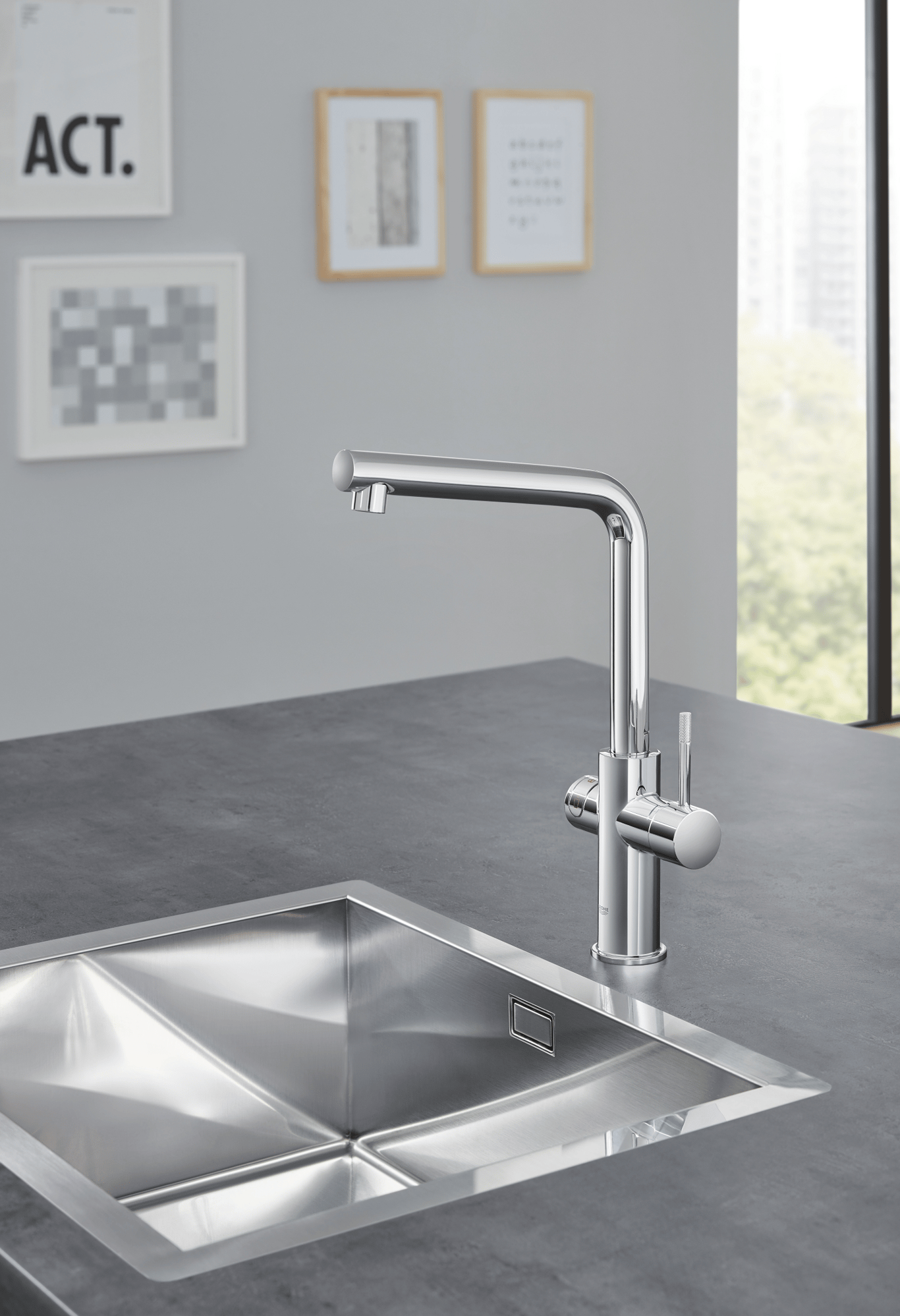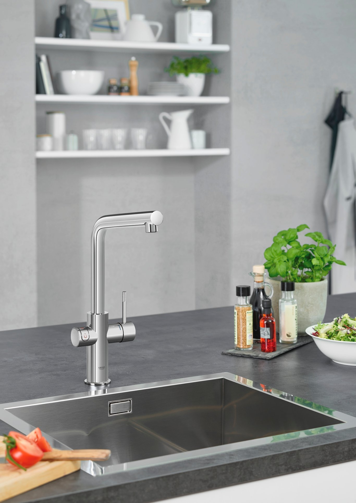 Med Grohes Red Duo kjøkkenarmatur får du kokende vann rett i kjøkkenkranen, perfekt til både te, kaffe og matlaging.
