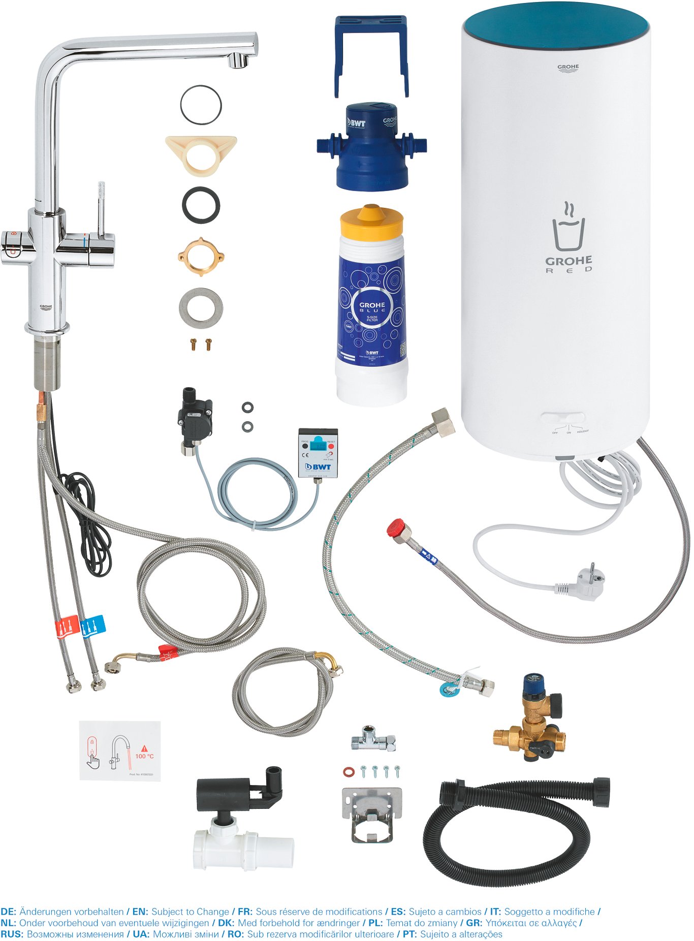 Grohe Red-filteret reduserer vannets innhold av kalk og tungmetaller, noe som gir både kranen og berederen lengre levetid. Grohe StarLight® belegget er slitesterkt, ripesikkert og enkelt å holde rent, bare tørk av kranen med en tørr klut.