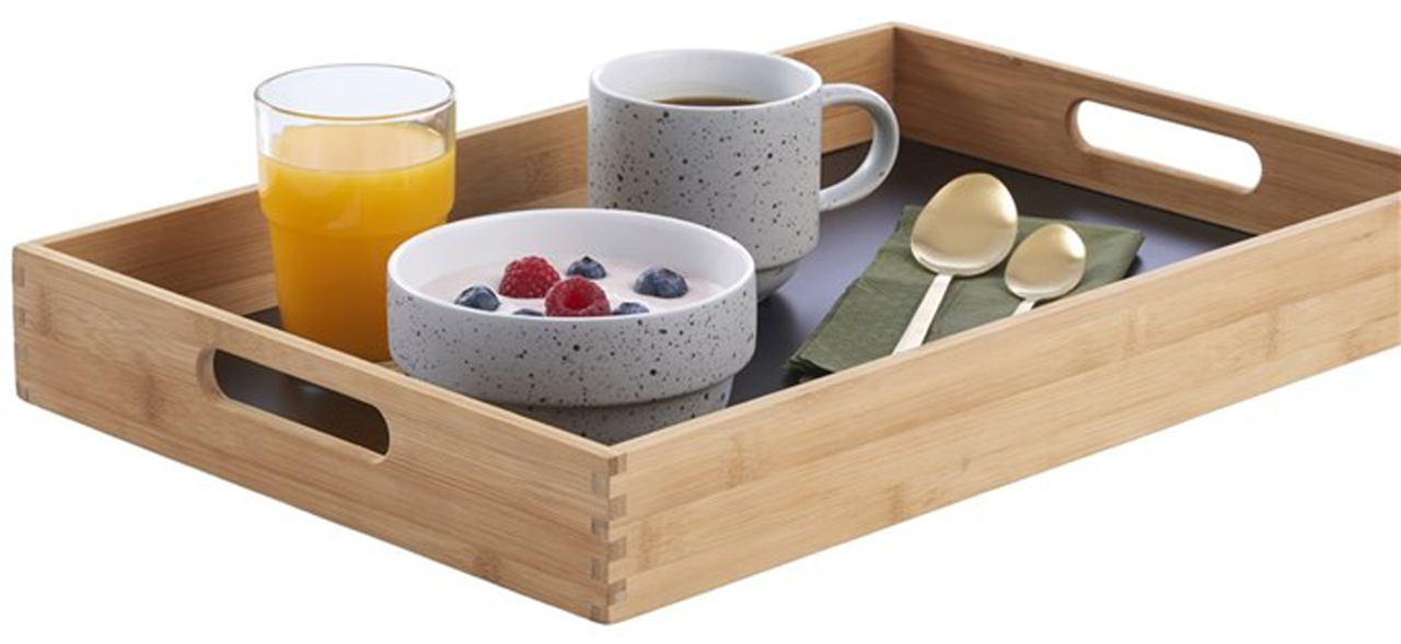 Dette serveringsbrettet fra Day har praktiske bærehåndtak på sidene.