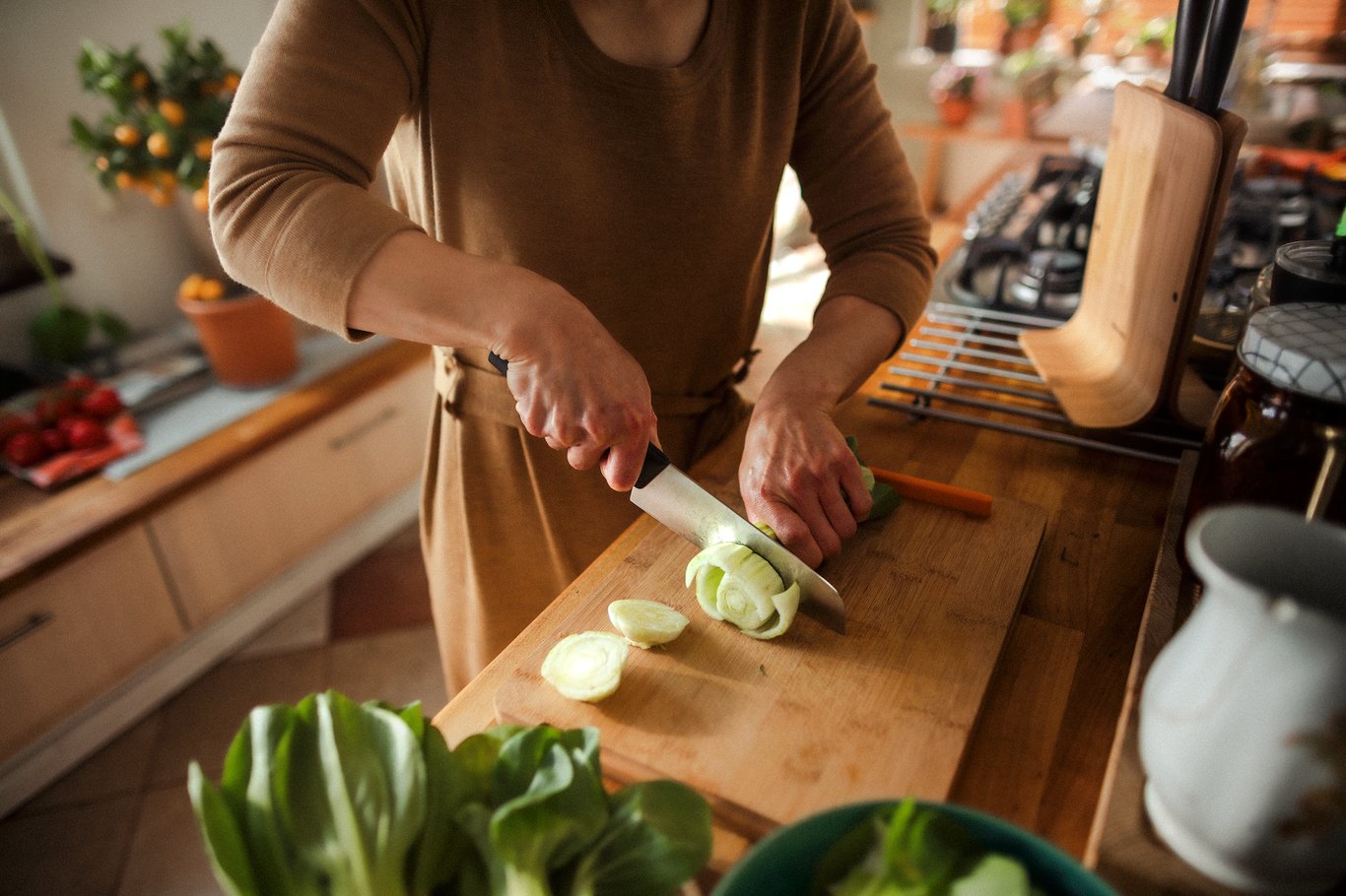 På håndtaket finner du SoftGrip™-detaljer og en dyp fingerhake som sikrer god ergonomi og ivaretar sikkerheten. Kniven kan vaskes i oppvaskmaskinen.