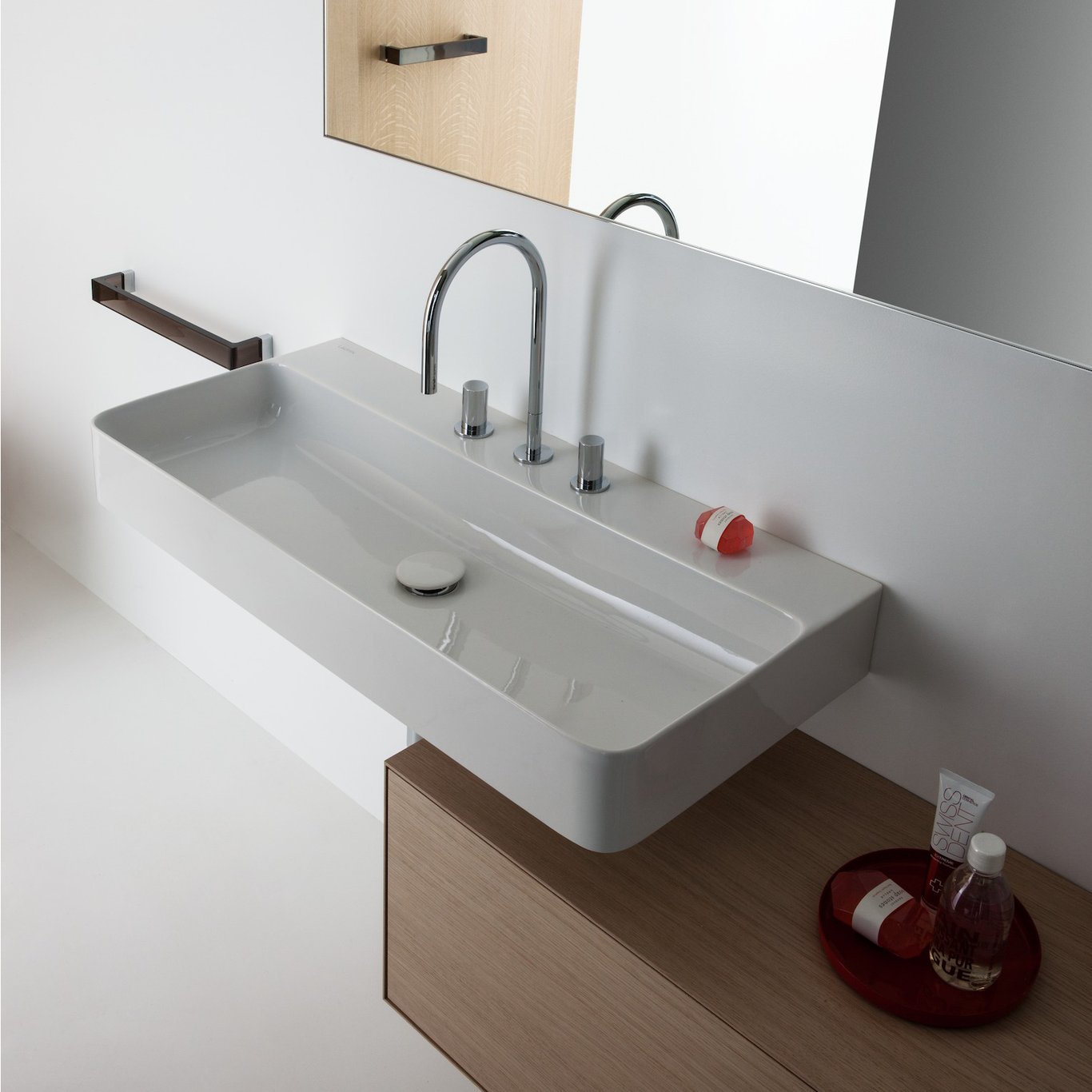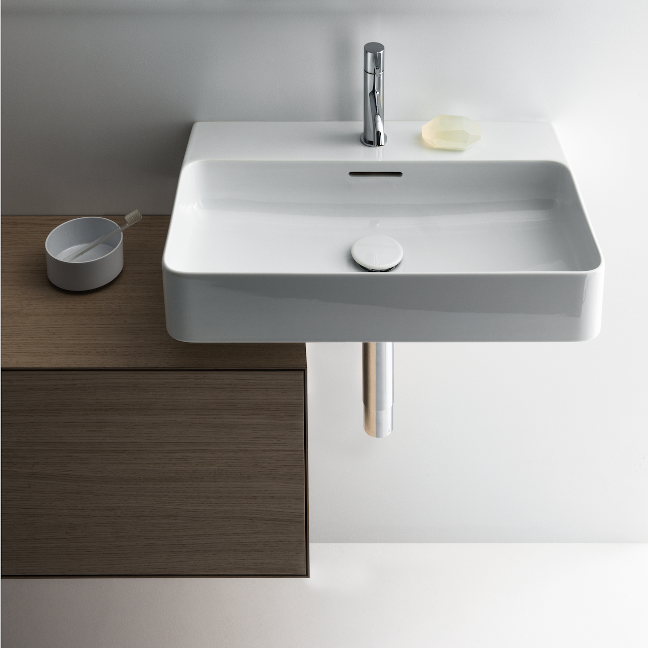 Designet av Konstantin Grcic i SaphirKeramik. Takket være sin ekstremt slanke kontur og klart definerte radier, er servantene lette og elegante.