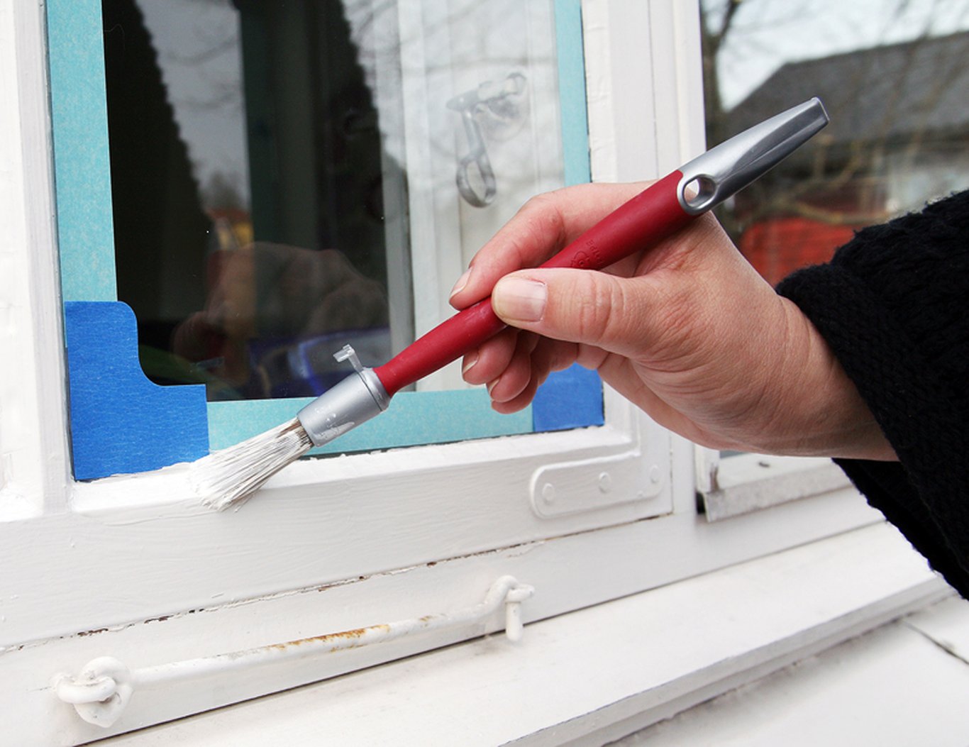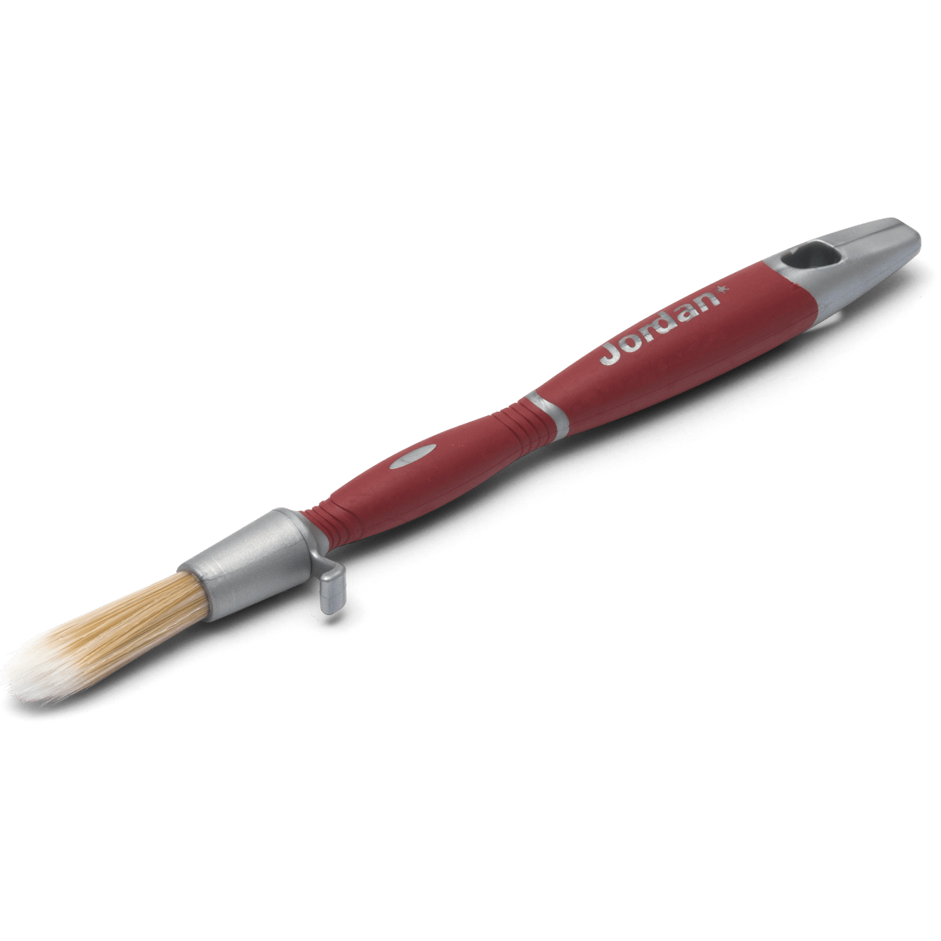 Denne penselen fra Jordan er beregnet for å male sprosser på vinduer. Det ergonomiske skaftet er behagelig å jobbe med, og penselen har en spannholder på siden.