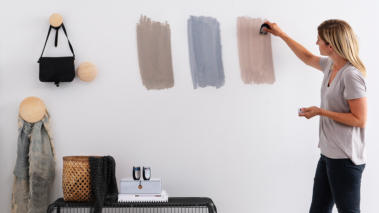 Ved prøvemaling av innvendig treverk og panel, bør malingen påføres på en papp- eller kartongplate, for deretter å holdes inntil objektet slik at man kan få en oppfatning av fargen.