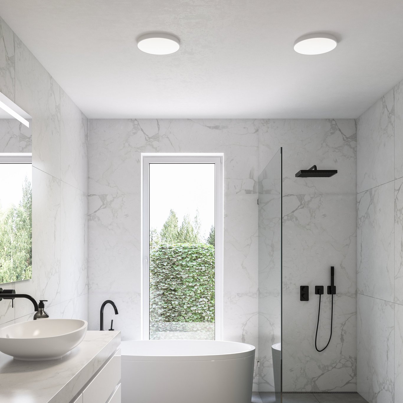 Denne plafonden fra Nordlux har integrert LED som gir et godt og funksjonelt lys. Den høye IP-graden gjør at den egner seg godt i fuktigere rom, som for eksempel på badet, i boden eller i kjelleren.