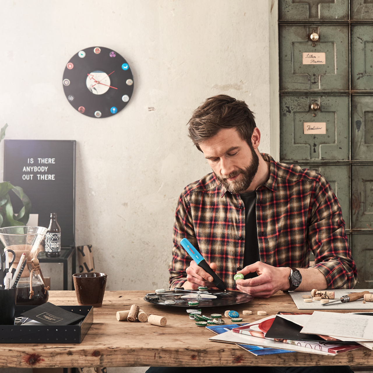 Denne utrolig allsidige lille limpistolen er batteridrevet og gjør det mulig å oppnå flotte resultater på mange kunst- og håndverksprosjekter. Gluey gir uendelige muligheter til å realisere kreative ideer. Det kompakte og brukervennlige designet gjør liming morsomt. En ergonomisk form gir dessuten økt komfort og godt grep under arbeidet. Ved rask liming, feste eller reparasjon av gjenstander gir den lille limpistolen frihet uten batteri med miljøvennlige oppladbare AA-batterier.