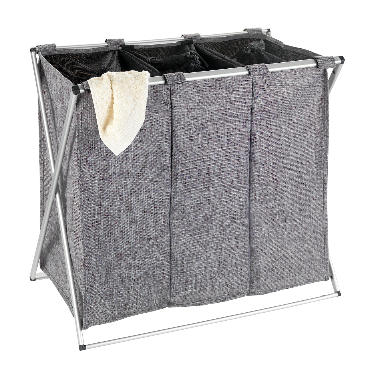 Skittentøyskurv med avtakbart trekk av slitesterkt materiale med solid og ramme. Med håndtak og 3 rom til tøyvask. Rom besparende da den er foldbar.