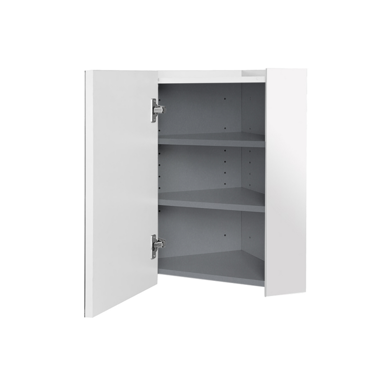 Oppbevar alle dine produkert vekk fra synet. Speilskapet har en speildør og 2 to avtagbare trehyller, disse hyllene er også flyttbare. På den måten kan du selv bestemme hvor du vil plassere hyllene og skapet rommer mye. Dørens hengsler er vendbare og utstyrt med en soft close funksjon. Dette hjørneskapet har ingen stikkontakt.
