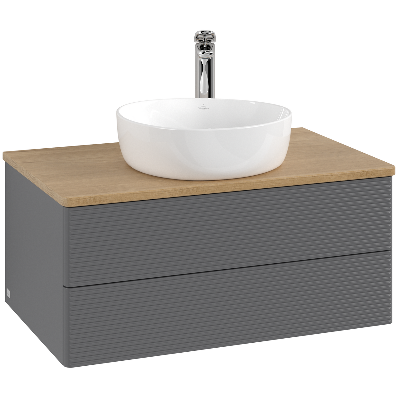 V&B ANTAO SERVANTSKAP 2 SKUFFER RILLET 800X360X500 M/KRANHULL ANTRASITT/EIK