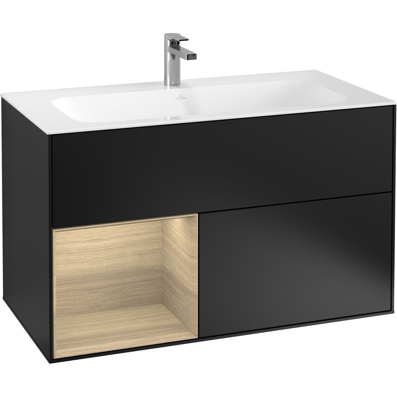 V&B FINION SERVANTSKAP 100 SORT MATT LAKK M/LYS VENSTRESTILT EIKEFINÉR HYLLE