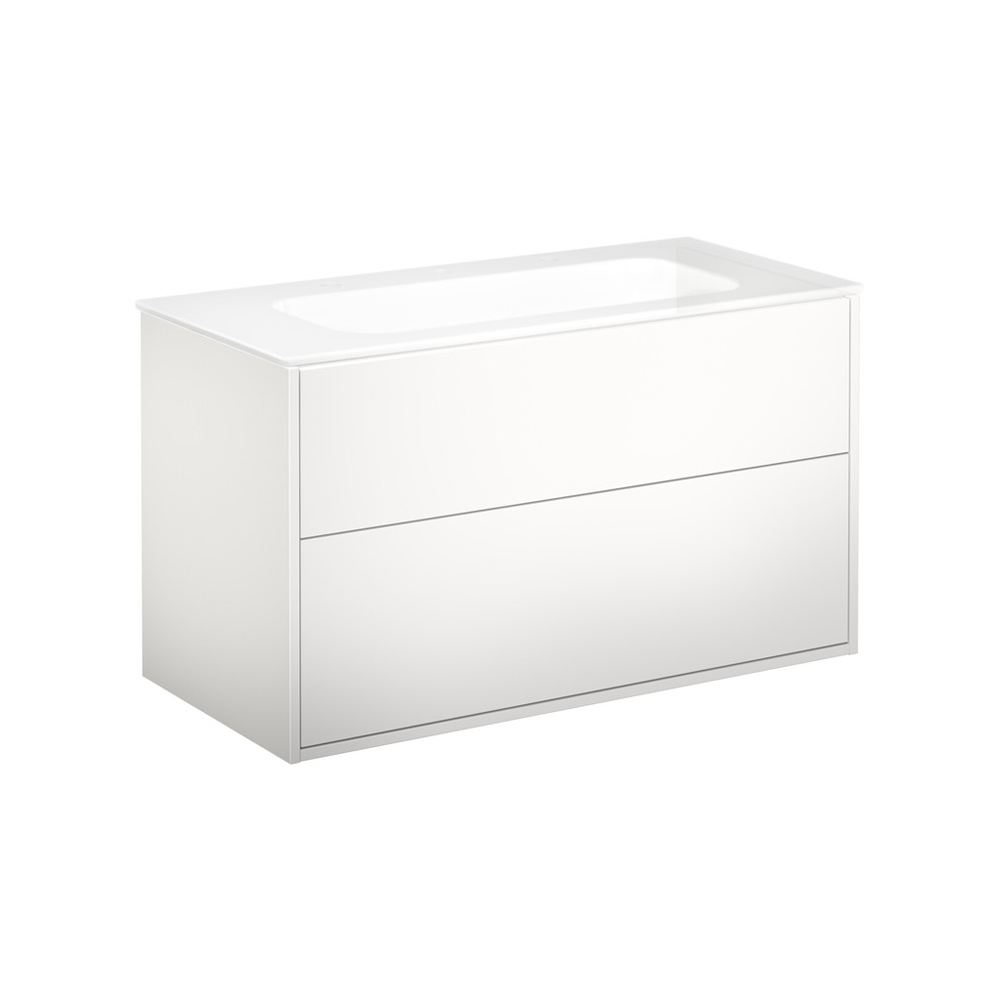 Dette servantskapet fra Gustavsberg har et rett og renskårent utseende som gjør de stilfullt innfelte skuffene og dørene til et designelement i seg selv. Kombineres med Artic servant i hvit eller sort.