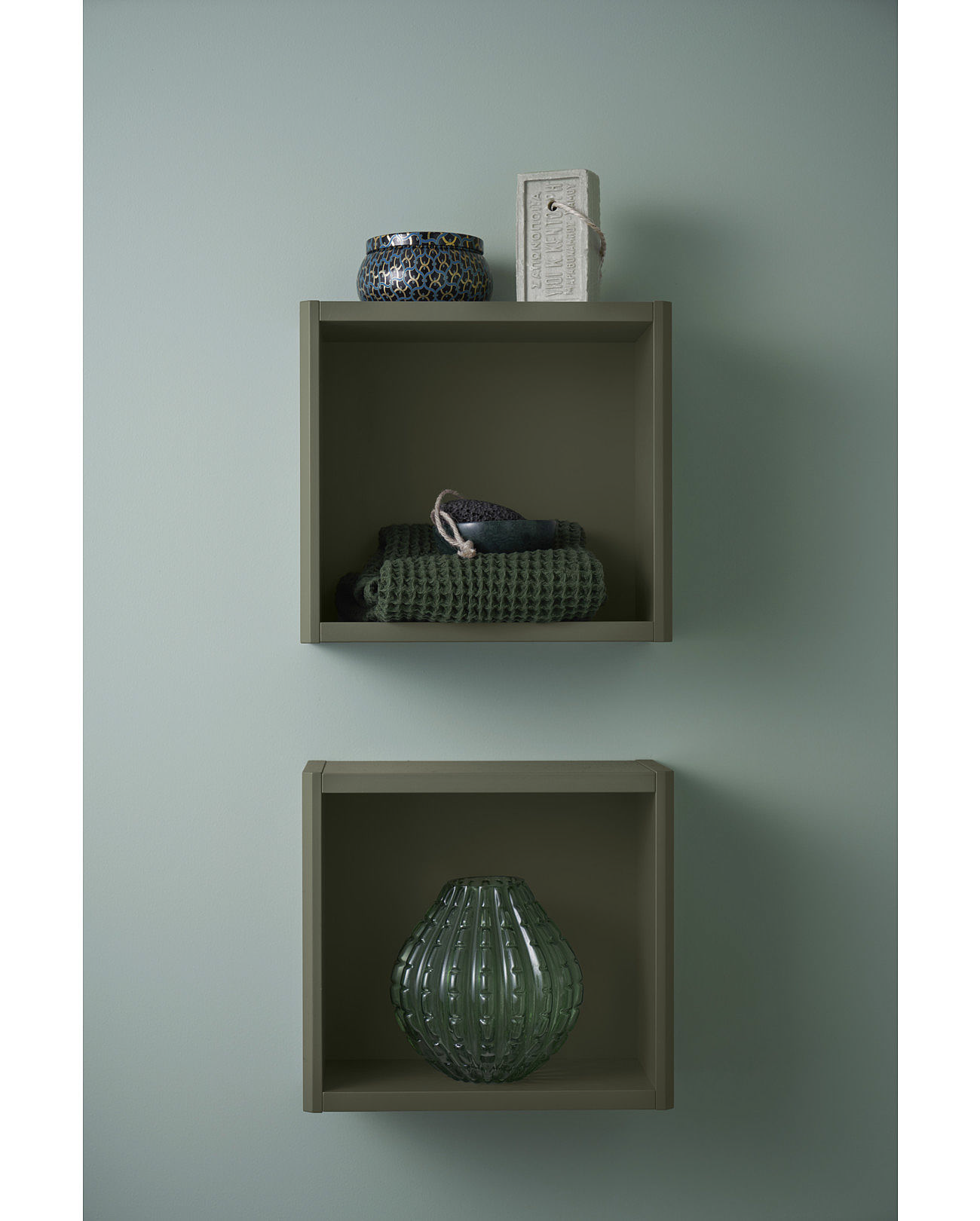 - To oppbevaringskuber har samme høyde som ett veggskap eller baderomsmøbel