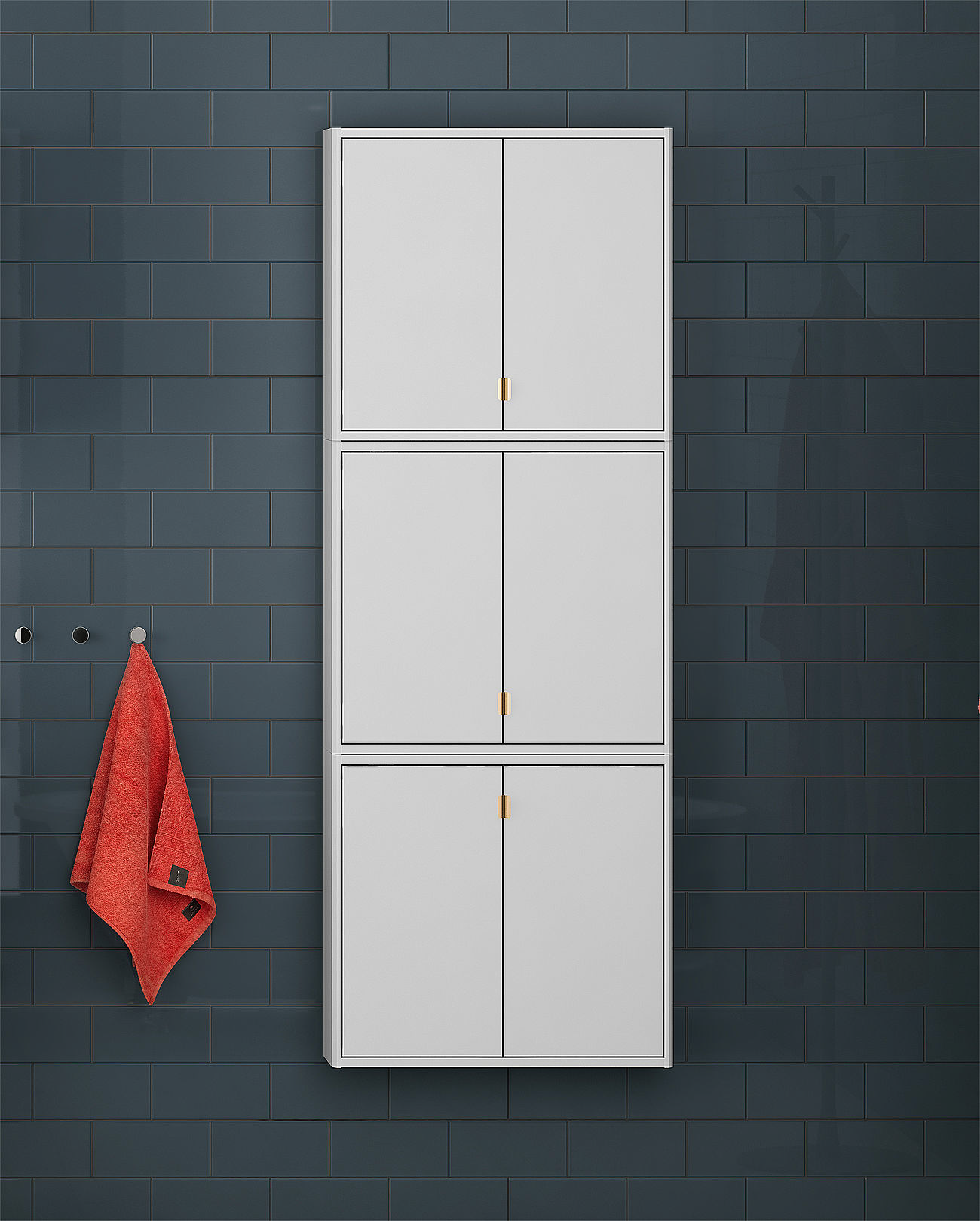 - Tre Graphic veggskap har samme høyde som ett høyskap