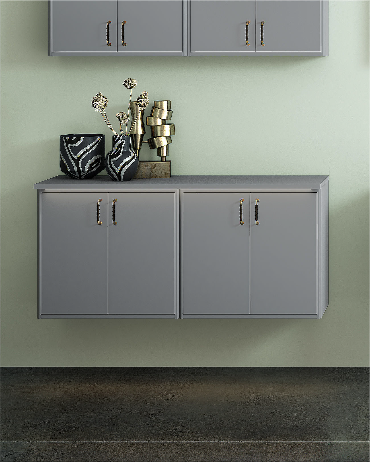 - Tre Graphic veggskap har samme høyde som ett høyskap