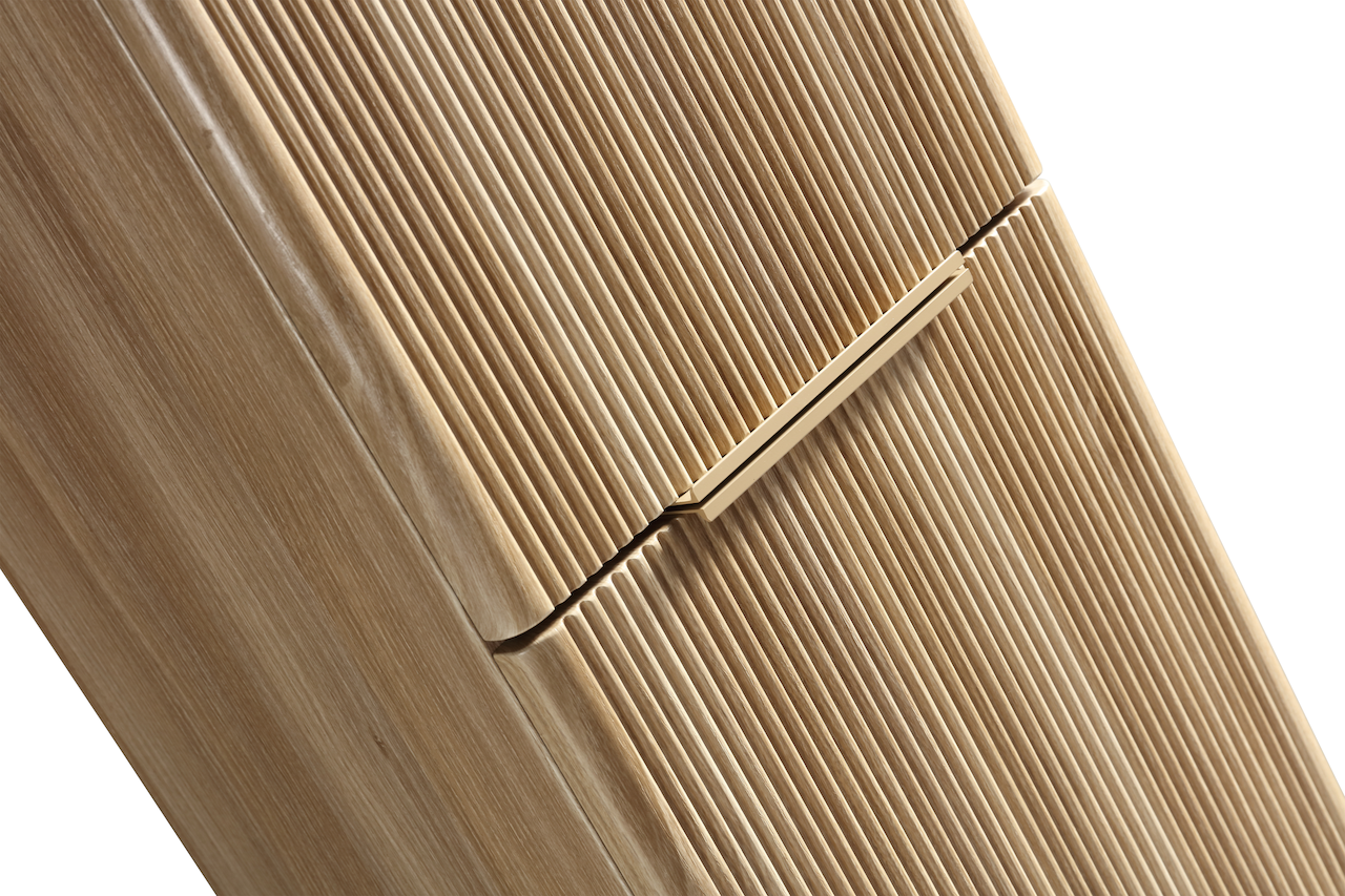 Lind Breath er en moderne og elegant møbelserie i en eikefarge som passer perfekt inn i den skandinaviske stilen. Dette høyskapet har riller i front, og en foliert overflate. Den folierte overflaten gjør rengjøringen enklere, og bevarer møbelets slitestyrke.