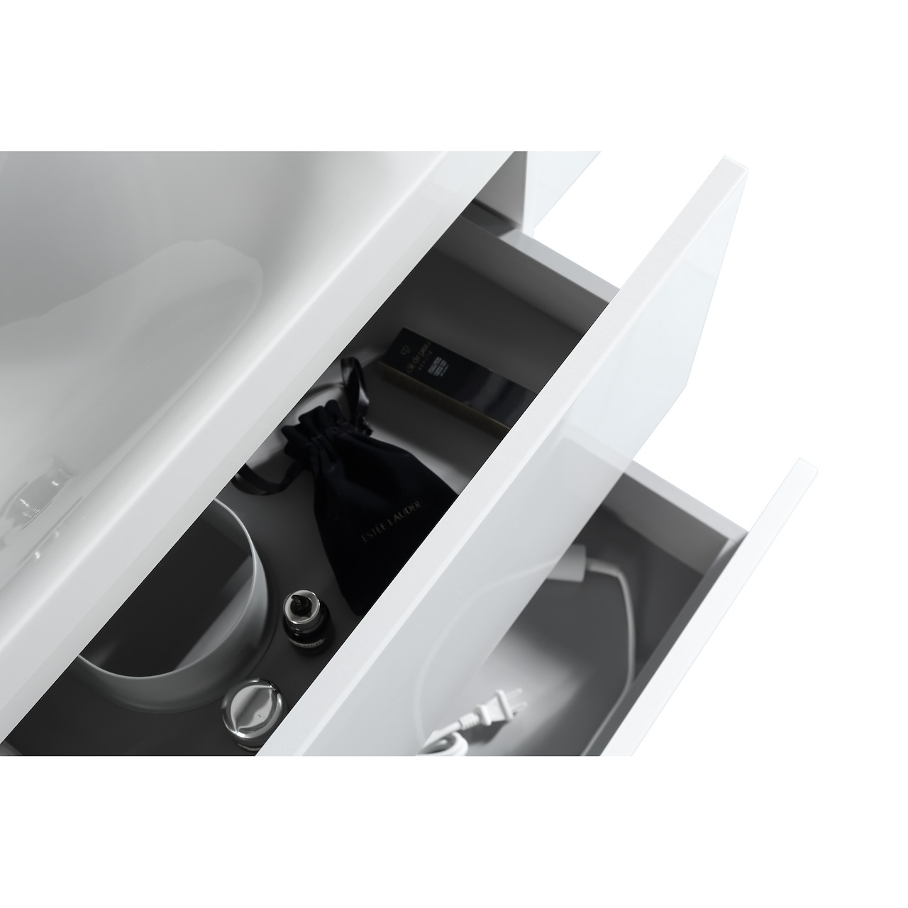 Baderomsmøbelet kommer ferdig montert, med en robust servant i støpemarmor. Møbelet finnes i flere størrelser, og det finnes også høyskap i samme serie. Skuffene har en soft close-funksjon som sørger for myk lukking og forlenget levetid. De kommer uten håndtak, slik at du kan sette ditt personlige preg på møbelet ved å velge håndtak selv.